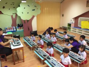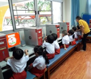 1) กิจกรรมการสอนภาษาอังกฤษโดยชาวต่างชาติเจ้าของภาษาสถาบัน FUN LANGUAGE CLUB ซึ่งจัดให้มีการเรียนการสอนตั้งแต่ระดับชั้นอนุบาลปีที่ 1-3 ให้นักเรียนสามารถฟัง สนทนาโต้ตอบประโยคสั้นๆมีสำเนียงการออกเสียงภาษาที่ถูกต้อง สามารถบอกคำศัพท์เบื้องต้นรอบตัวเป็นภาษาอังกฤษได้ (1 คาบ/สัปดาห์)