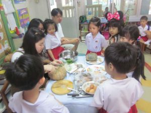 ค.) ส่งเสริมกิจกรรมการบำเพ็ญประโยชน์ และช่วยเหลือผู้อื่นทั้งที่บ้านและโรงเรียน โดยควรส่งเสริมให้เด็กช่วยเหลือ รับผิดชอบงานบ้านตามวัย การสนับสนุนให้เด็กชั้นอนุบาลปีที่ 2และ 3 เข้าร่วมกิจกรรมจิตอาสาต่างๆ อาทิเช่น การเข้าร่วมกิจกรรมพี่ช่วยน้อง, กิจกรรมผู้พิทักษ์สิ่งแวดล้อม ผู้นำฐานการเรียนรู้ และกิจกรรมบำเพ็ญประโยชน์ต่างๆ