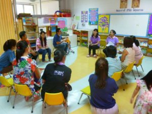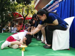 ง.) ส่งเสริมมารยาทแบบไทย ให้เด็กๆมีสัมมาคารวะ รู้จักอ่อนน้อม ตามวัฒนธรรมไทย โดยเฉพาะมารยาทการไหว้สวัสดี การแสดงความขอบคุณและขอโทษ