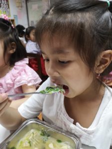 โครงการเด็กกินผัก # สามสัปดาห์ผ่านไป แปลงผักกวางตุ้งปลูกเองของเด็กๆก็ได้เวลาเก็บมาทำอาหาร ผักปลอดสารพิษเพราะเห็นหนอนเจาะใบเป็นรู รอบๆแปลงยังเห็นตั๊กแตน ผีเสื้อ และนก อยู่รอบตัว คุณครูและเด็กๆตัดสินใจปล่อยหนอนกลับไปในแปลงผักกวางตุ้งที่เหลือด้วยเหตุผลที่ว่า “ผักมีเยอะเราแบ่งกันกินก็ได้” ผักสด หวานกรอบ ทานแล้วติดใจ ยิ่งได้นำมาใส่ในก๋วยเตี๋ยวมื้อกลางวัน ทำให้เด็กๆรับประทานกันอย่างเอร็ดอร่อย # สุขภาพดีเริ่มต้นจากสุขนิสัยในการเลือกรับประทาน❤️ คอยติดตามเมนูผักแสนอร่อยของเด็กๆกันต่อไปนะคะ