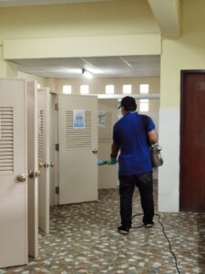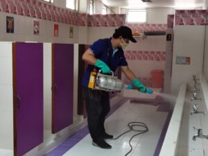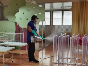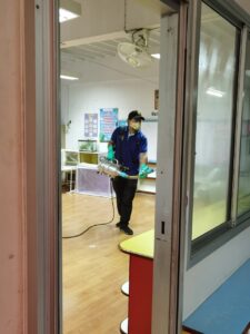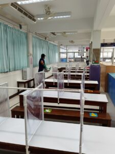การฉีดพ่นน้ำยาฆ่าเชื้อโรคโดยบริษัททรูลี่โนแลน ด้วยน้ำยาที่ได้รับการรับรองในการฆ่าเชื้อไวรัสโคโรน่า และ เป็นน้ำยาที่มีความปลอดภัยสูง ในระดับ Food Grade สามารถใช้ฉีดพ่นทำความสะอาดในบริเวณโรงครัว โรงอาหารได้ โดยได้ทำการฉีดพ่นอบฆ่าเชื้อโรคในบริเวณห้องเรียน ห้องประกอบต่างๆ ห้องครัว โรงอาหาร ห้องน้ำสนามเด็กเล่น และภายในรถโรงเรียน เป็นมาตรการทำความสะอาดขั้นสดุท้ายเพื่อพร้อมเตรียมรับกิจกรรมปฐมนิเทศกลุ่มย่อยในสัปดาห์หน้า ๒๒-๓๐ มิถุนายน และการเปิดเรียนภาคต้น ปีการศึกษา ๒๕๖๓ ในวันที่ ๑ กรกฎาคม ๒๕๖๓