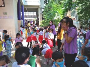 กิจกรรมการซ้อมหนีไฟ ที่ปฏิบัติกันทุกภาคเรียน คุณครูมีการซักซ้อมเด็กๆกันไว้เบื้องต้น เวลาไฟไหม้จะมีควัน จึงต้องหมอบหรือก้มตัวต่ำ ใช้ผ้าปิดจมูกป้องกันควัน และลงจากอาคารให้รวดเร็ว ในครั้งนี้เมื่อได้ยินสัญญาณ คุณครูและเด็กๆได้ปฏิบัติตามที่ได้ซักซ้อมไว้ เป็นการเรียนรู้จากสถานการณ์จำลอง นอกจากนั้นครูยังได้ค้นพบนักดับเพลิงรุ่นจิ๋ว ที่คว้าบัวรดน้ำมาเติมเพื่อเตรียมดับไฟ😊  สุดยอดเลยครับ #มาตรการความปลอดภัยที่ละเลยไม่ได้