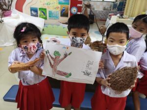 03Nov 2020 by admin “เราจะสร้างรังนกได้หรือไม่?” จากครั้งที่แล้วที่ครูบีชวนเด็กๆวาดรูปรังนกจากประสบการณ์เดิม วันนี้ครูบีเติมเต็มประสบการณ์ ด้วยการนำเสนอคลิปรังนกแบบต่างๆ และนำรังนกของจริงที่หามาได้มาจัดแสดงให้เด็กๆสังเกตอย่างใกล้ชิด บนโต๊ะทำงานมีเศษวัสดุตามที่เด็กๆได้เสนอไว้ในการวาดภาพรังนกครั้งแรกมาประกอบการทำกิจกรรมอย่างหลากหลาย เพื่อเปิดโอกาสให้เด็กๆได้สำรวจวัสดุต่างๆเพื่อตัดสินใจ ครูชวนเด็กๆทำงานเป็นกลุ่มเล็กๆ2-3 คน ให้ออกแบบ “รังนก” ที่จะทดลองสร้างร่วมกัน และจดรายการวัสดุอุปกรณ์ที่จะใช้ในการสร้างสรรค์ผลงานนั้น เป็นอีกกิจกรรมสนุกที่เด็กๆทำงานกันจนเลยเวลา.... พร้อมทั้งคำถามที่ถามครูบีว่า “เมื่อไหร่ครูบีจะให้ทำ?” ออกแบบรังนก_๒๐๑๑๐๓_0 ออกแบบรังนก_๒๐๑๑๐๓_1 ออกแบบรังนก_๒๐๑๑๐๓_2 ออกแบบรังนก_๒๐๑๑๐๓_3 ออกแบบรังนก_๒๐๑๑๐๓_5 ออกแบบรังนก_๒๐๑๑๐๓_6 ออกแบบรังนก_๒๐๑๑๐๓_9 ออกแบบรังนก_๒๐๑๑๐๓_11 ออกแบบรังนก_๒๐๑๑๐๓_16 ออกแบบรังนก_๒๐๑๑๐๓_18 ออกแบบรังนก_๒๐๑๑๐๓_19 ออกแบบรังนก_๒๐๑๑๐๓_22 ออกแบบรังนก_๒๐๑๑๐๓_23 ออกแบบรังนก_๒๐๑๑๐๓_28 ออกแบบรังนก_๒๐๑๑๐๓_29 ออกแบบรังนก_๒๐๑๑๐๓_31 ออกแบบรังนก_๒๐๑๑๐๓_33