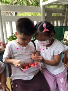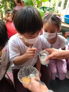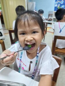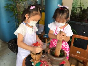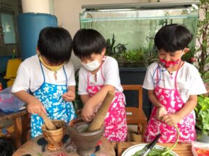 เมนูถั่วของเด็กๆมาแล้วจ้า เมนูอะไรเอ่ยต้องใช้ครก? ใช่แล้วค่ะ ส้มตำถั่วหวานอร่อย และเป็นครั้งแรกของเด็กๆหลายคนที่ได้ทดลองทำเมนูส้มตำด้วยตนเอง สนุกที่สุดก็ตอนตำนี่แหละ ผลัดกันตำใหญ่ แม้ถั่วของเราจะช้ำกันไปหน่อย แต่เด็กๆก็อยากทานกันทุกคน 😆ภารกิจชวนเด็กกินผักครั้งนี้จึงสำเร็จลุล่วง ผักที่ปลูกเอง ลงมือทำเอง มันก็จะหวานกรอบด้วยความภูมิใจ อร่อยจริงๆนะ 🍃