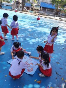 15Feb 2021 by admin ต้นเฟื่องฟ้าออกดอกสวยงามเหลือเกิน ครูเลยอดที่จะชวนเด็กๆไปสัมผัสกับความงามนั้นไม่ได้ 💐ครูบีพาเด็กๆชั้นอนุบาล๑ มาทำกิจกรรมการพิมพ์ภาพ 🍃ใบไม้หลากหลายชนิดที่พบในโรงเรียนซึ่งเด็กๆและครูบีช่วยกันเก็บและรวบรวมมานั้นเมื่อนำมาพิมพ์ลงบนกระดาษต่างให้ลวดลายสวยงามแปลกตา เติมเต็มความงามให้กันและกัน 😘เมื่อเด็กๆทำงานกันท่ามกลางธรรมชาติ ใต้ร่มของดอกเฟื่องฟ้าที่วันนี้เบ่งบานสะพรั่งพร้อมกันเป็นพิเศษ ครูสังเกตเห็นความผ่อนคลาย และสมาธิในการทำกิจกรรมที่ยาวนานเป็นพิเศษ 😊 21121 _1_๒๑๐๒๑๕_0 21121 _1_๒๑๐๒๑๕_1 21121 _1_๒๑๐๒๑๕_2 21121 _1_๒๑๐๒๑๕_3 21121 _1_๒๑๐๒๑๕_4 21121 _1_๒๑๐๒๑๕_5 21121 _1_๒๑๐๒๑๕_6 21121 _1_๒๑๐๒๑๕_7 21121 _1_๒๑๐๒๑๕_8 21121 _1_๒๑๐๒๑๕_9 21121 _1_๒๑๐๒๑๕_10 21121 _1_๒๑๐๒๑๕_11 21121 _1_๒๑๐๒๑๕_12