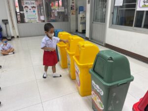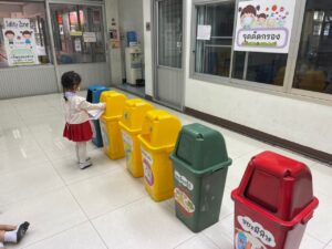 เปิดเรียนใหม่นี้ คุณครูชวนเด็กๆมาทบทวนการทิ้งขยะ จากฐานการเรียนรู้ “ลุงถังกินจุ” ซึ่งเป็นหนึ่งฐานการเรียนรู้ส่งเสริมวินัยในการจัดการขยะภายในโรงเรียน ถังขยะของเรามีสัญลักษณ์ติดด้านนอกด้วยตัวอย่างของจริง หรือภาพเหมือนจริง เพื่อช่วยให้เด็กๆเลือกทิ้งขยะได้ถูกถัง ได้ฝึกทดลองเล่นเกม “ทิ้งขยะให้ถูกถัง” จากเศษวัสดุต่างๆที่ครูนำมา ซึ่งต้องใช้ทักษะการคิดและจัดหมวดหมู่ประเภทสิ่งของก่อนการตัดสินใจ 😊 โรงเรียนของเรามีฐานการเรียนรู้ง่ายๆที่สนุก ได้ประโยชน์อีกหลายฐานการเรียนรู้เลยนะคะ มาติดตามกัน😘